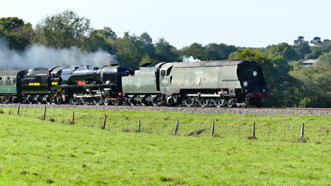 Peter Hollands’ photo from the Friday shows 73082 ‘Camelot’ and 34059 ‘Sir Archibald Sinclair’ on Freshfield Bank. It was the latter’s first gala appearance since completion of its recent overhaul.