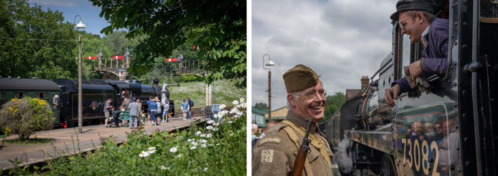 Throughout the weekend, beautifully restored steam locomotives operate across the line, linking the Home Front and Occupied Europe experiences.