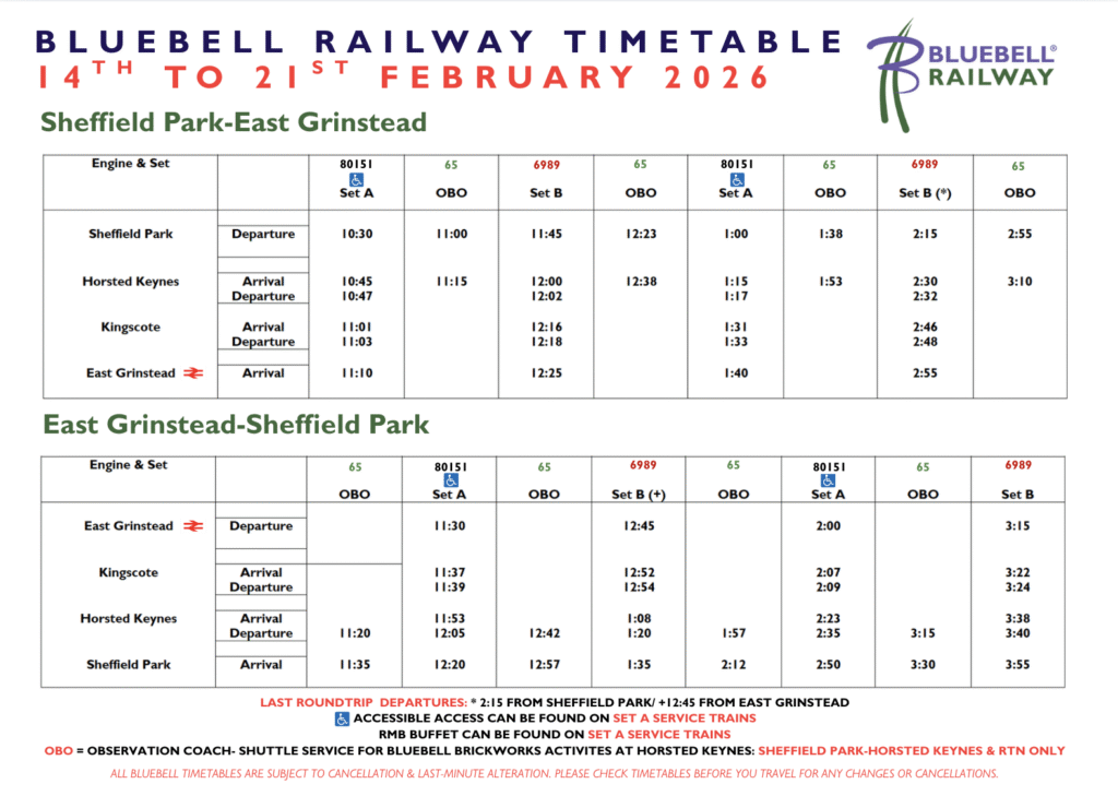 © 2026 Bluebell Railway | Sheffield Park Station, East Sussex, TN22 3QL | Privacy Policy | Safeguarding Policy | Terms & Conditions | Web Design by Moocow