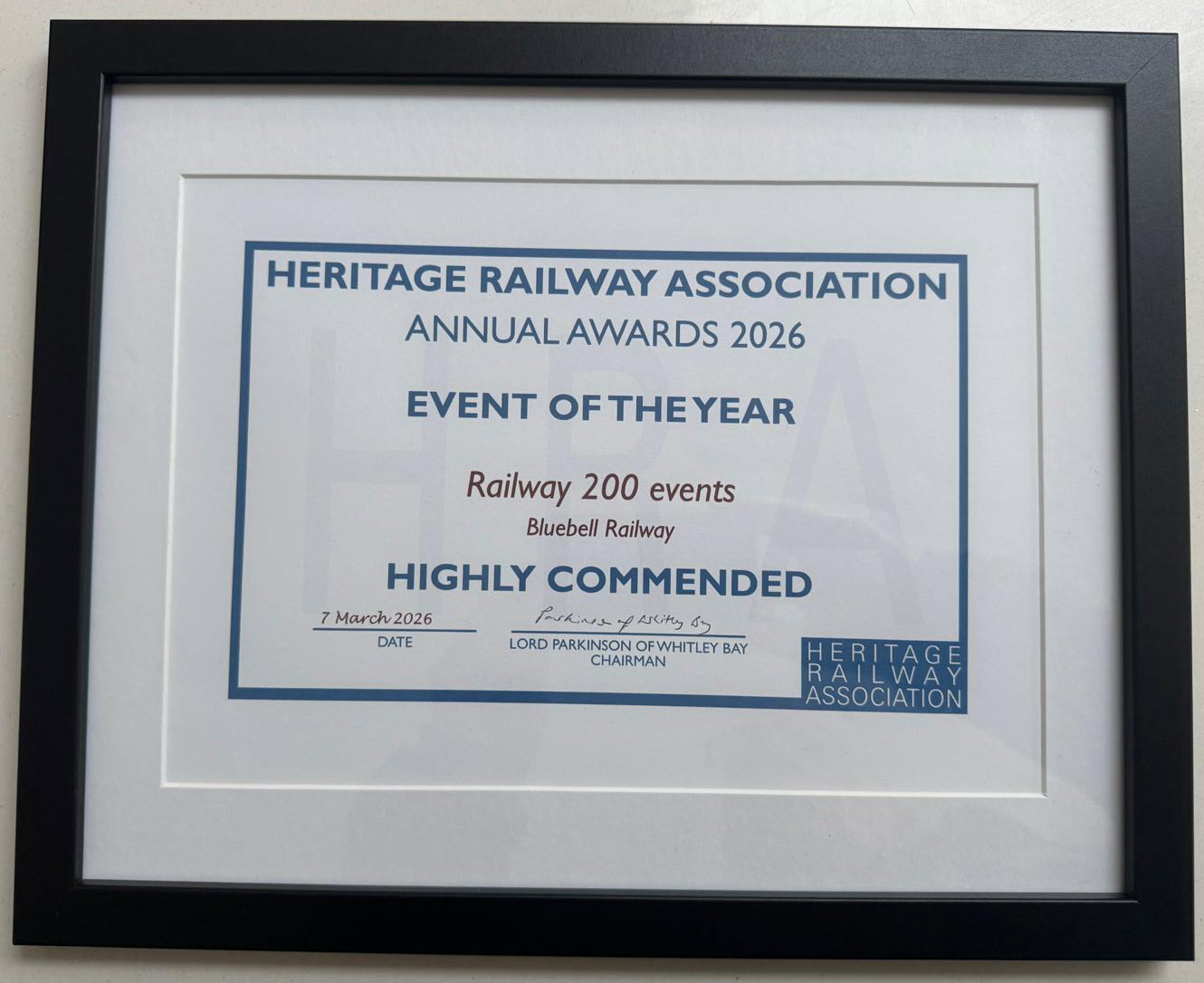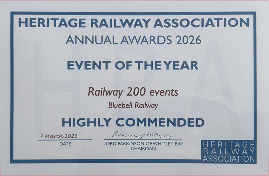 – Triple success for the Bluebell at the Heritage Railway Association Awards